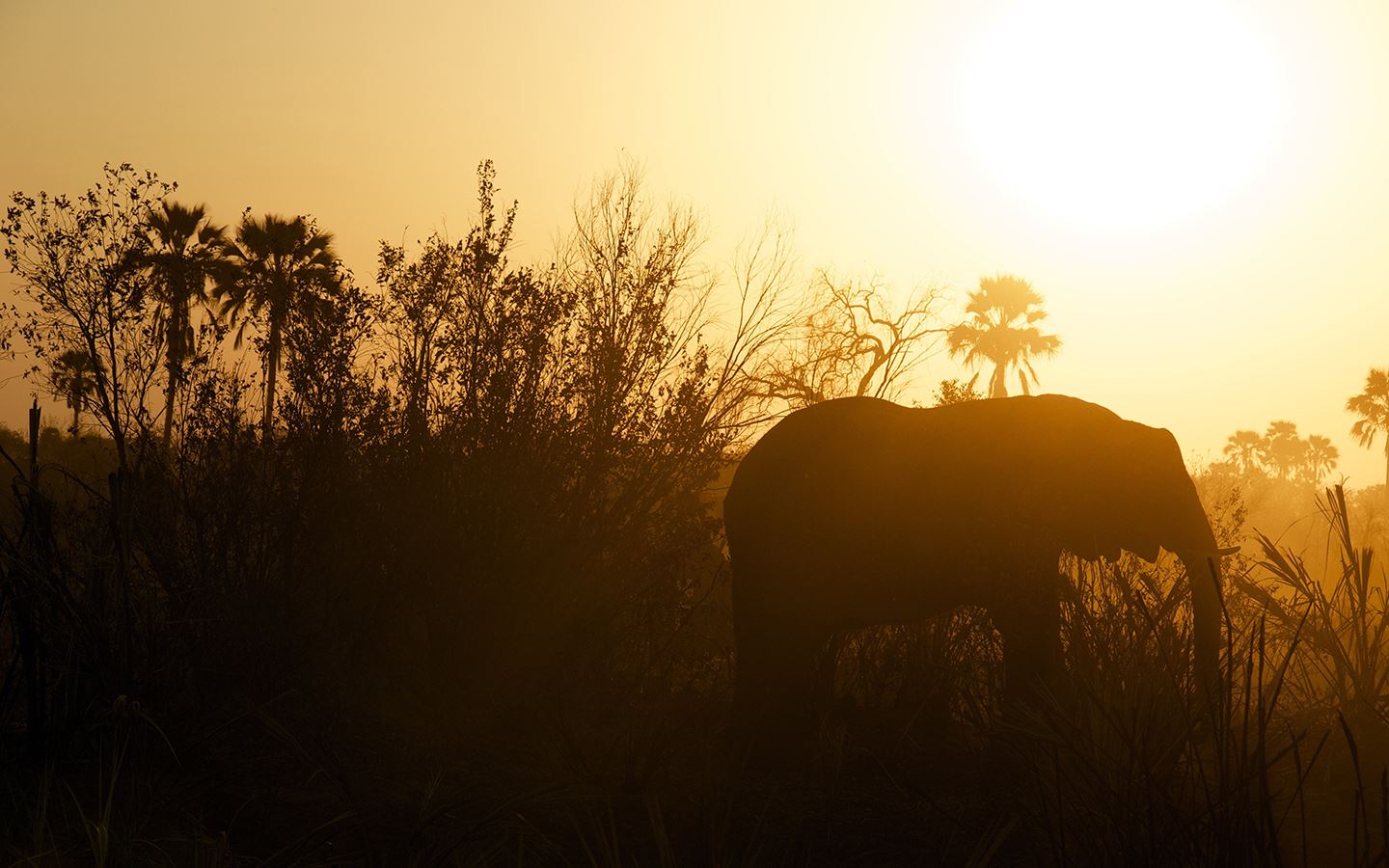Caption: Elephant at sundown